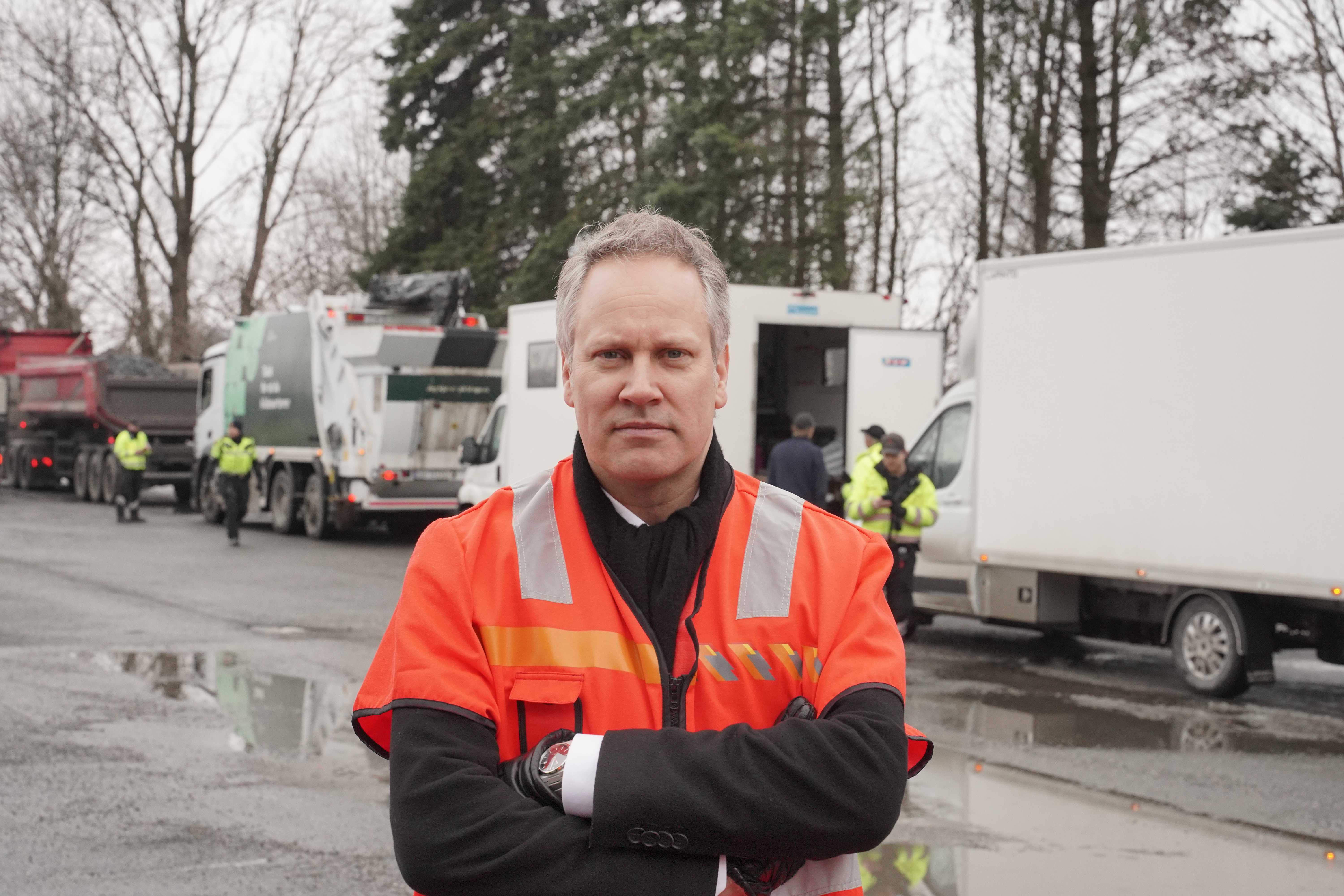 Samferdselsminister Jon-Ivar Nygård på kontroll av transportbransjen på Risløkka trafikkstasjon i Oslo i februar. Foto: Kristoffer Rød-Lindberg/ Samferdselsdepartementet