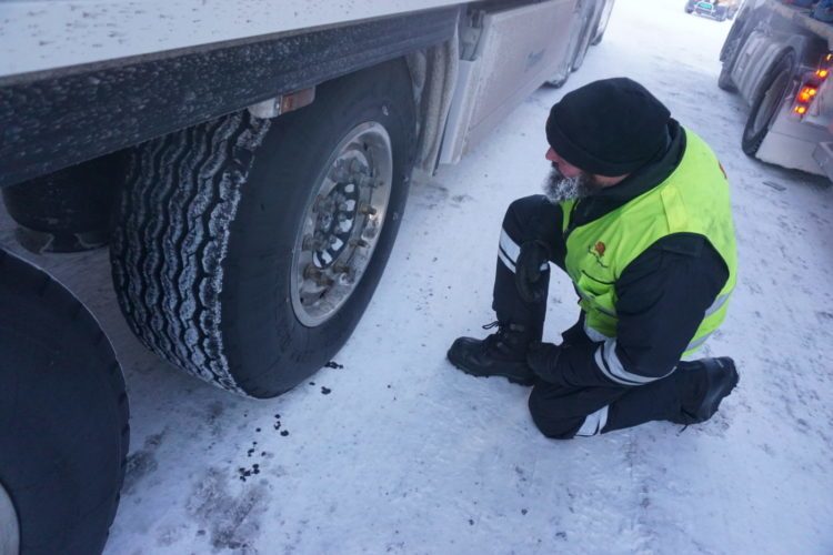 – I helga krøyp gradestokken ned mot 30 minusgrader på grenseovergangen ved Kilpisjärvi. Det er klart det kan gjøre jobben til kontrollørene ekstra utfordrende. Vi har imidlertid utstyr for å hanskes med dette, og kontrollørene er vant med tidvis ekstreme arbeidsforhold. Det er mer bekymringsfullt å se hva sjåførene har på seg. Flere har kommet ut i tennissokker og tresko for å legge på kjetting, sier Simonsen.
