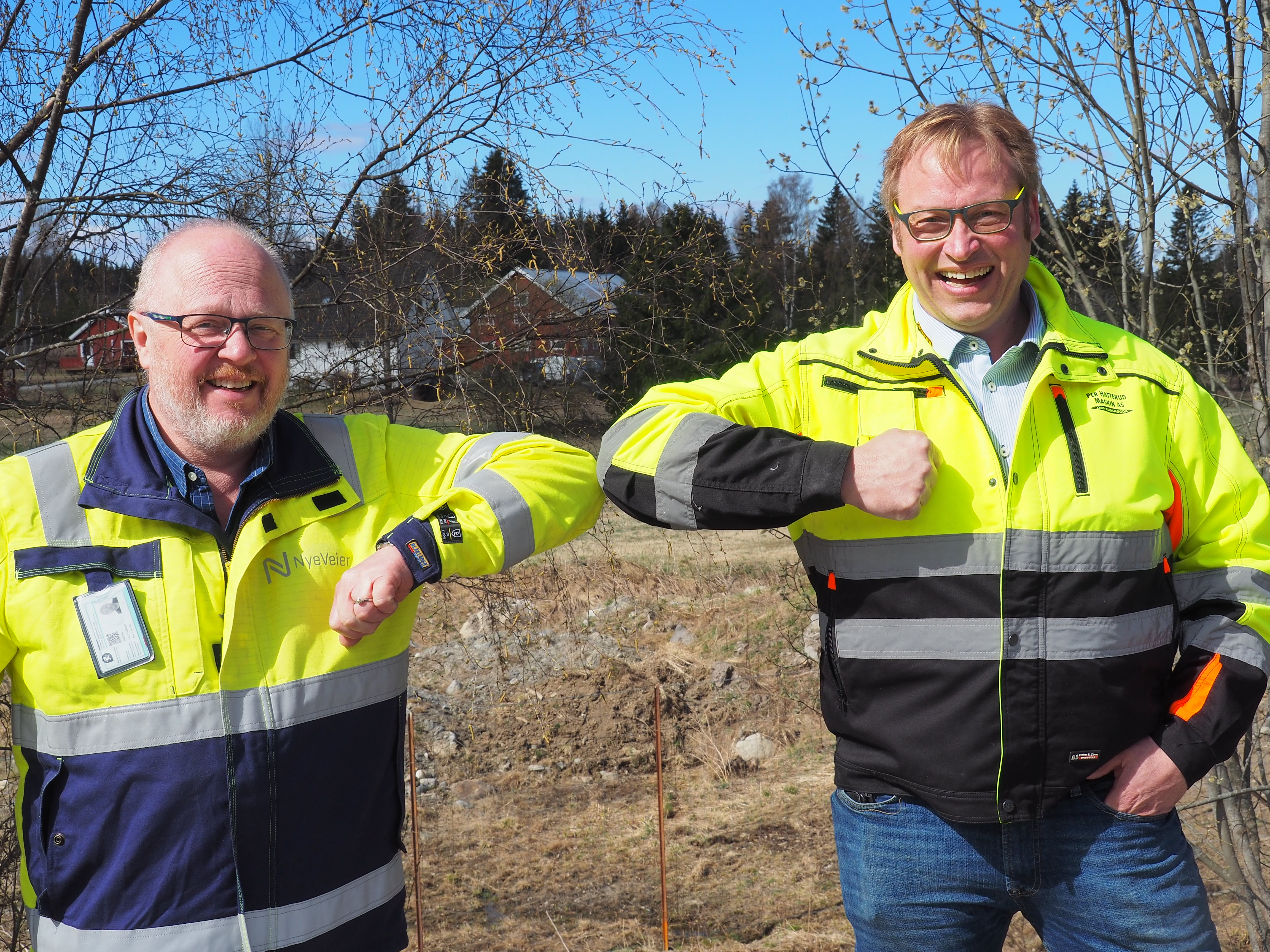 Prosjektsjef Jarle Kristian Tangen i Nye Veier og Per Hatterud i Hatterud Maskin. Foto: nYE veier