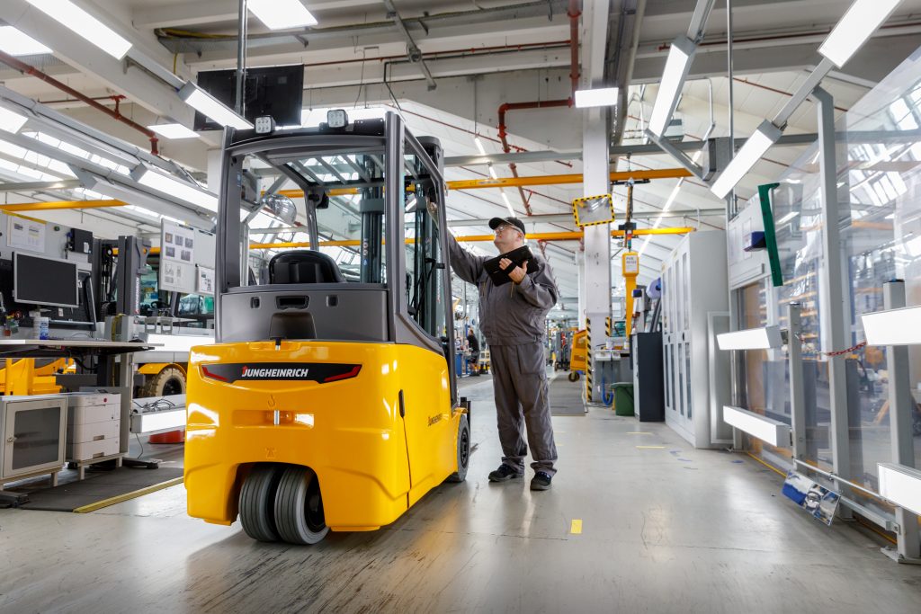 Jungheinrich fortsetter sin suksesshistorie når det gjelder elektriske motvektstrucker og kommer med en nylansering av 3- og 4-hjulsserien. Gaffeltruckene har blitt grundig optimalisert på områdene hydraulikk, sikkerhet og programvare. I dag rullet den første trucken i den nye generasjonen av samlebåndet ved Jungheinrich-fabrikken i Moosburg, Tyskland.