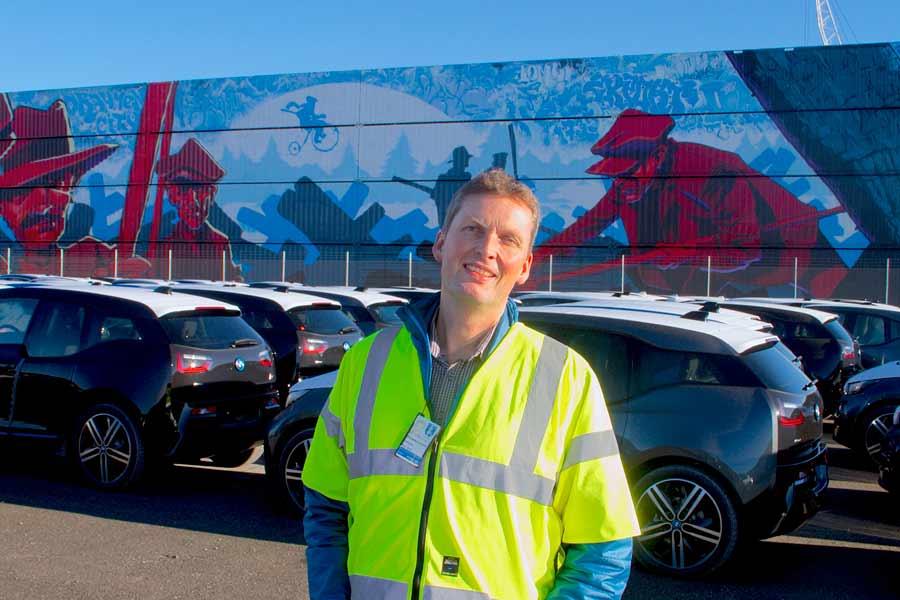 – Vi håndterer jo 65.000 containere årlig her på havna, men dette er de første vi har dekorert, smiler assisterende havnedirektør Ivar Vannebo ved Drammen havn.
