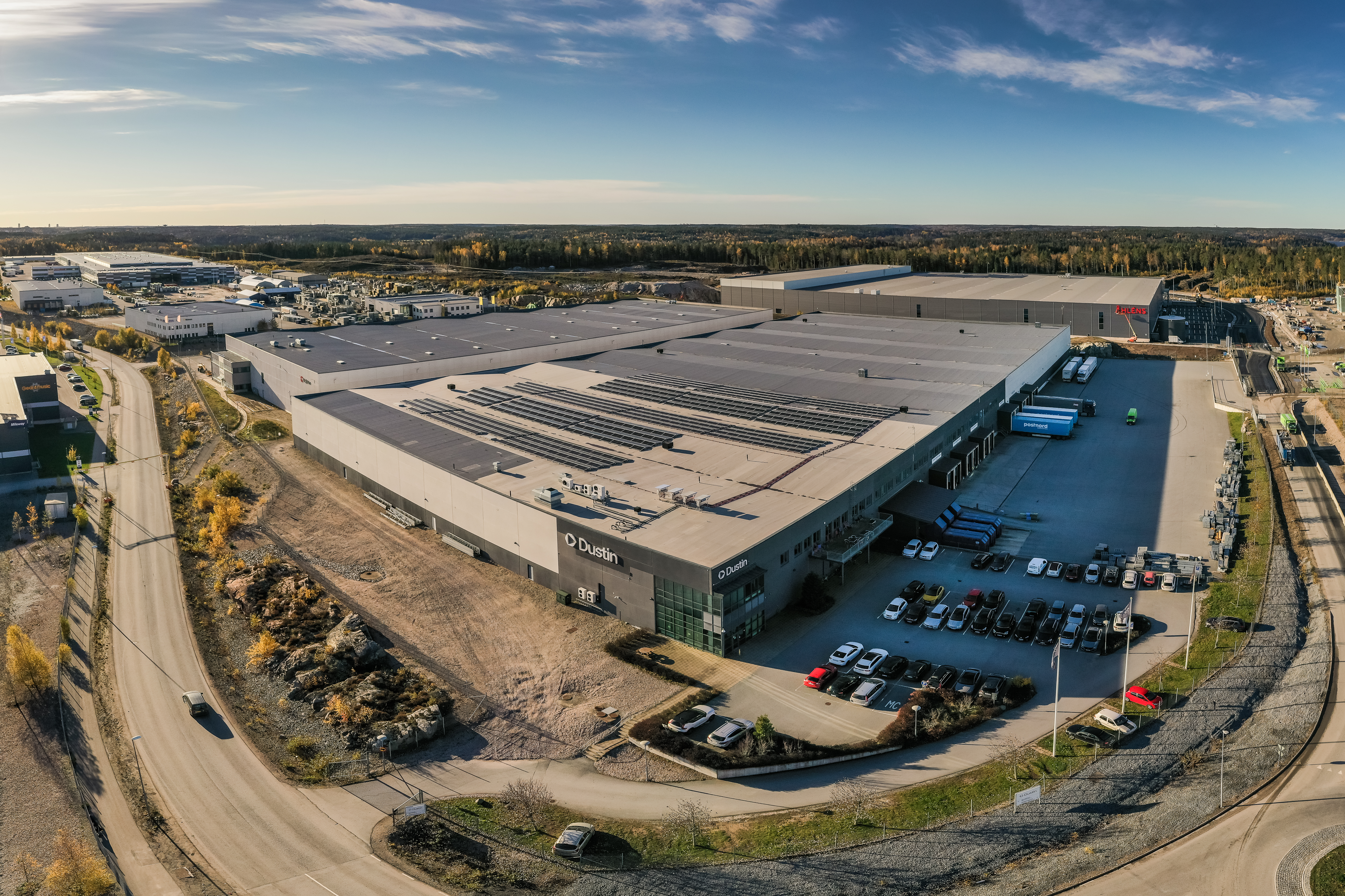 Nå installerer Dustin et solcelleanlegg på drøyt 2400 kvm ved sentrallageret utenfor Stockholm, som betjener hele det nordiske markedet. I tillegg skiftes alle gamle lysarmaturer i den 20 000 kvm store produksjonshallen ut med nye moderne og smarte LED-armaturer. Dette er en del av Dustins bærekraftmål om null klimapåvirkning i verdikjeden innen 2030.