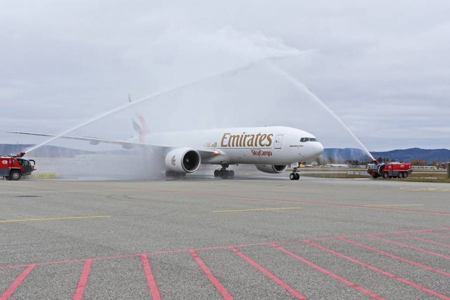 Tirsdag 11. oktober startet selskapet Emirates SkyCargo opp med ukentlige avganger fra Oslo lufthavn med eget fraktfly. Emirates vil bruke en Boeing 777-200F på ruten som vil gå direkte til Dubai med norsk laks og sjømat for videre distribusjon til Asia og Afrika.