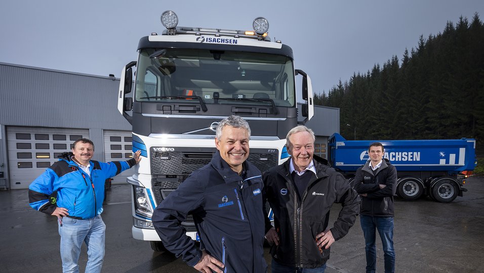– Dette må være den største avtale inngått for levering av Volvo anleggslastebiler i Norge og det er en stor glede å ha fått være med på denne ordren. Spesielt fordi jeg har solgt lastebiler til Hæhre og Isachsen over en lang tid, sier selger i Volmax Kongsberg, Leif Ole Løvås.