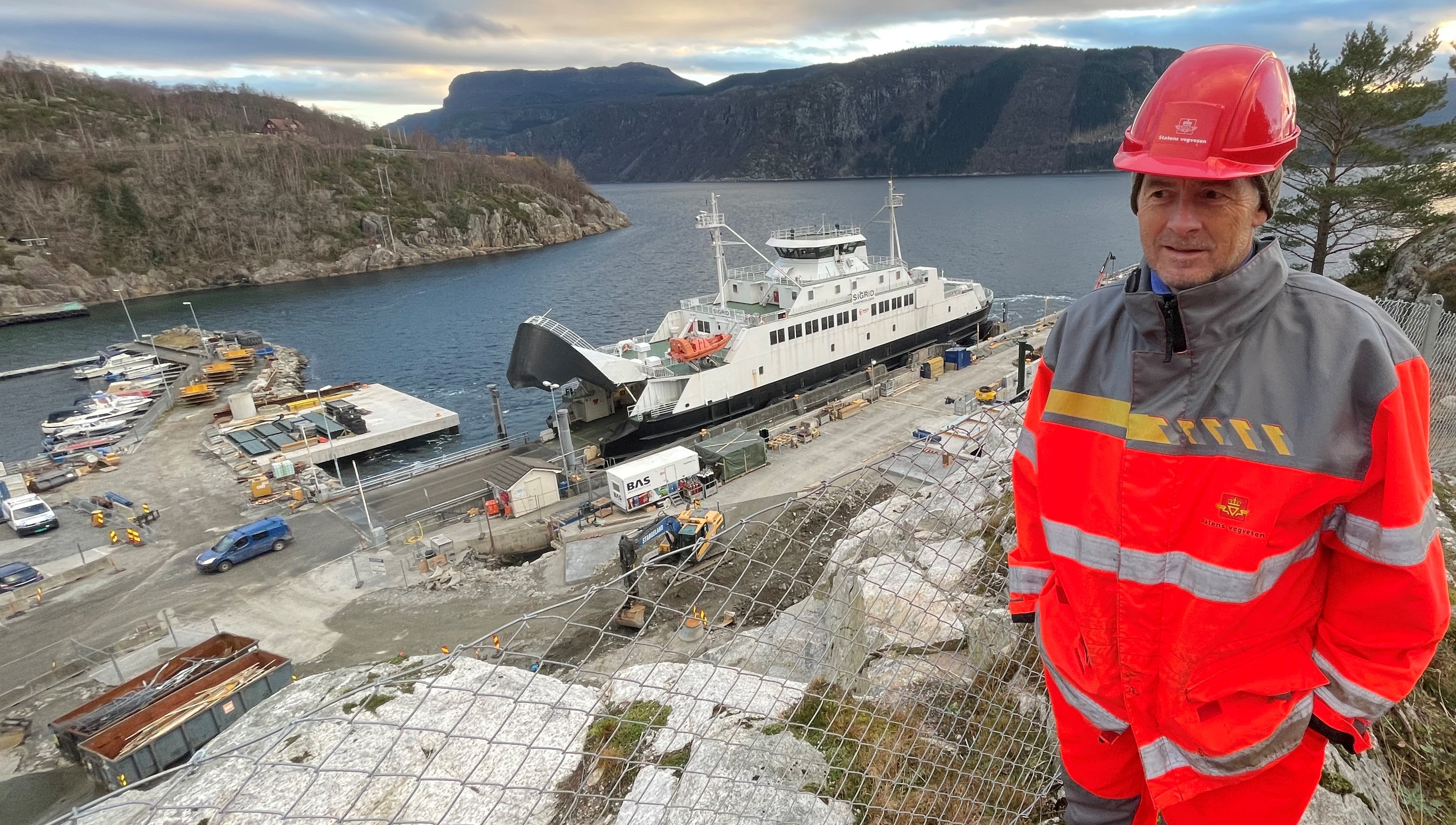 Koronautbrudd har ikke stoppet arbeidet på denne kaien Livar Thomassen er Statens vegvesen sin prosjektleder for utbyggingen og fornyingen av ferjesambandet Hjelmeland – Nesvik. Her på fergekaien på Nesvik. Foto: Lars Olve Hesjedal