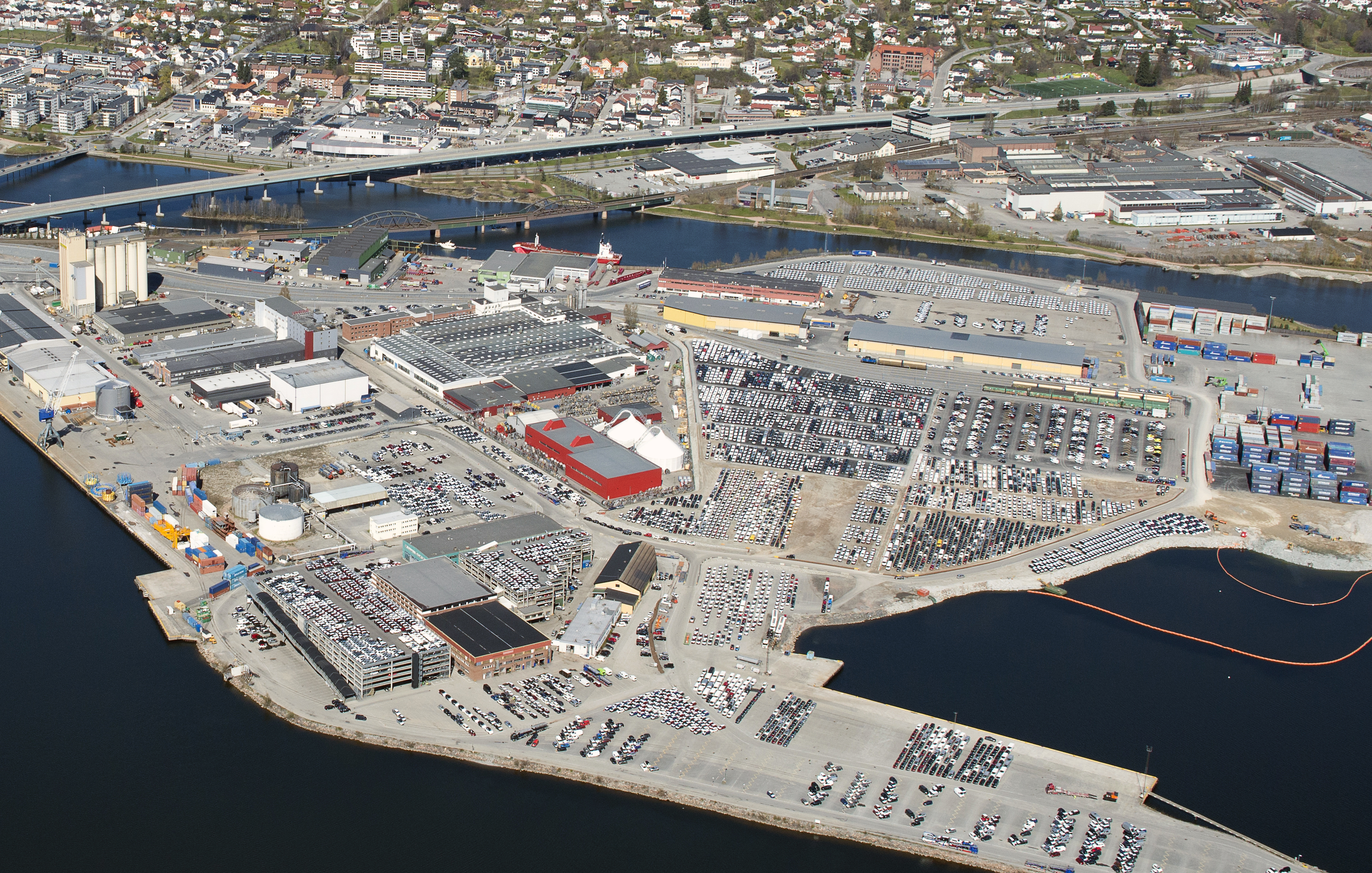 Markedstilpasser planene for Holmen godsterminal Terminalen på Holmen i Drammen er et eksempel på effektivt samspill mellom sjø og bane. Foto fra 2017: Anne Mette Storvik / Bane NOR