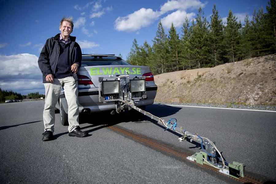 – Teknologien er basert på en elektrisk skinne i veien, som driver og lader bilene under kjøring. I Sverige kan løsningen være aktuell for de store hovedveiene. Det vil da være to til fire prosent av veinettet som må elektrifiseres. På kortere turer mellom disse veiene brukes batteri, sier Gunnar Asplund, administrerende direktør i Elways.
