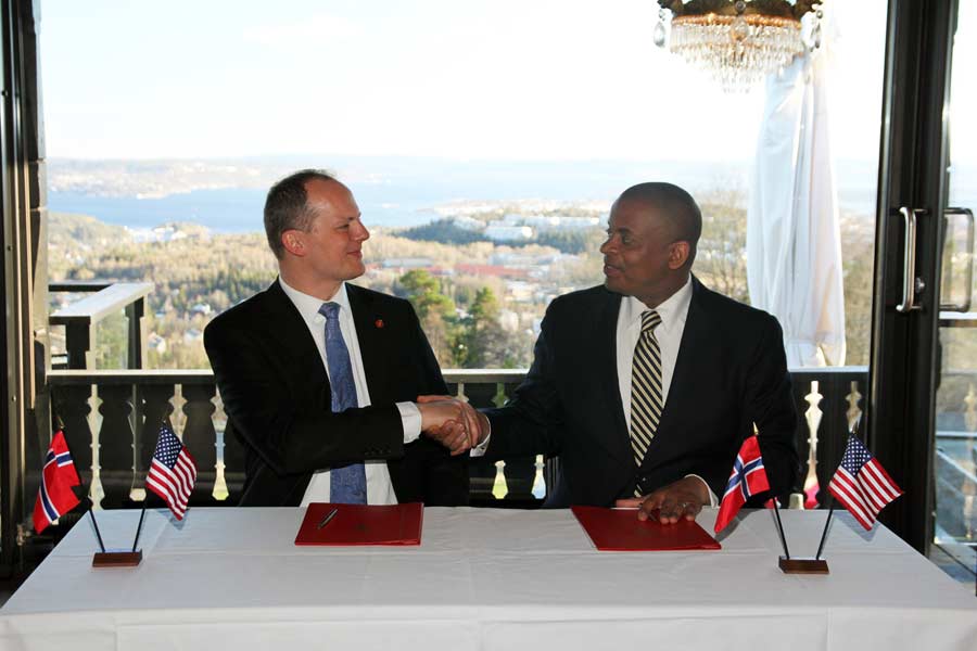 Samferdselsminister Ketil Solvik-Olsen og den amerikanske transportministeren Anthony Foxx signerte torsdag kveld en samarbeidsavtale om å utveksle kunnskap, teknologi og erfaring på transportfeltet.