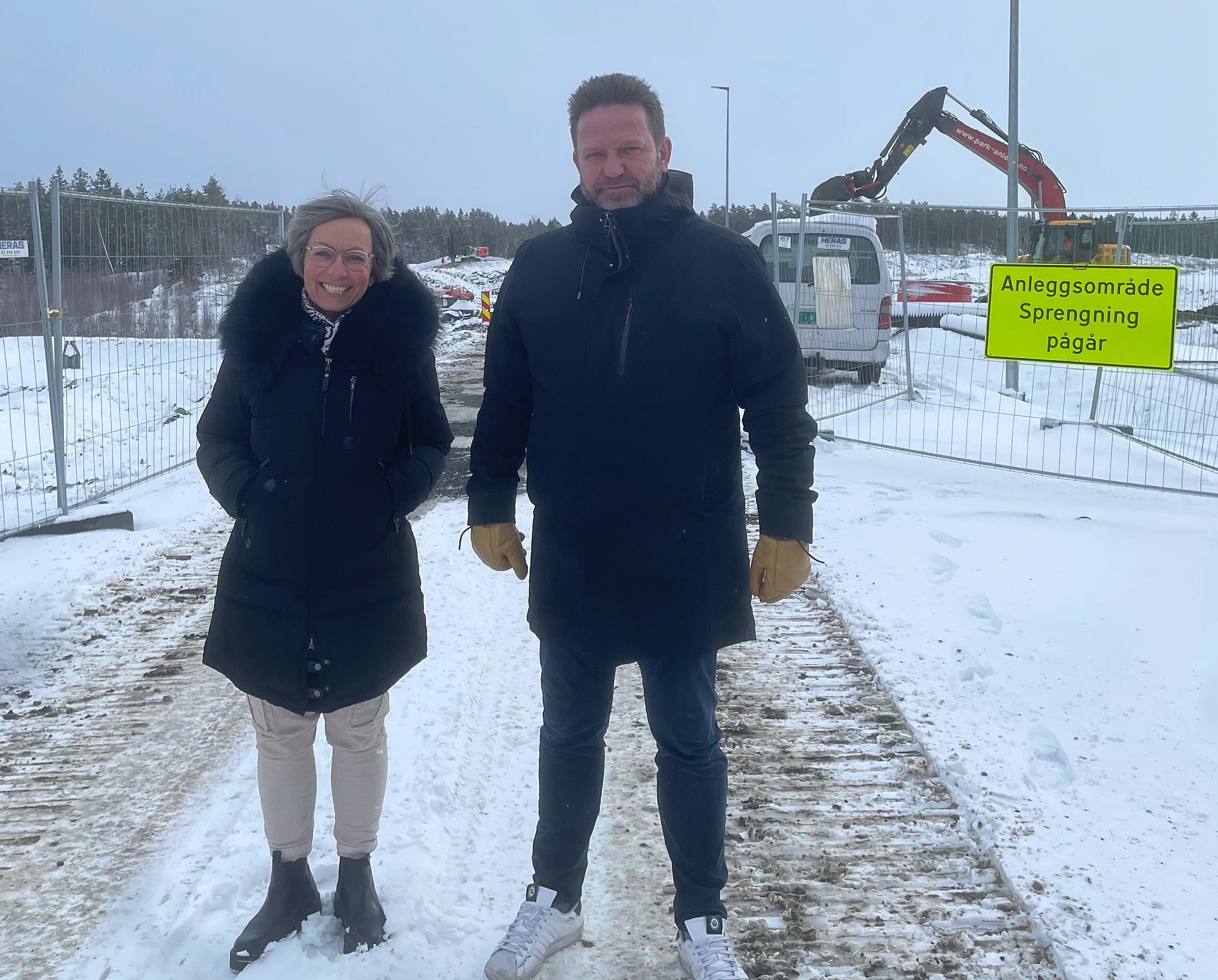 Ordfører i Moss Hanne Tollerud og Hans-Øyvind Ryen, konserndirektør i Posten, møttes i Moss Næringspark hvor Posten skal bygge en av sine største og mest moderne terminaler. Foto: Posten