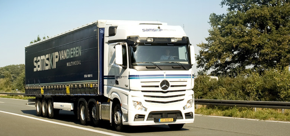 Mens de viktigste miljøfordelene til Samskips bærekraftige transportpolitikk påløper i shortsea, innenlands og jernbanetransport, er selskapets satsing på bærekraft også håndgripelig over veien. Samskip driver trolig en flåte på 200 nye Mercedes-lastebiler, som dekker et estiat på 17 millioner kilometer per år.