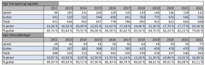Tabell 3: I denne tabellen har du antall søkere til transport og logistikk + yrkessjåførfaget med både total, kjønn og prosentmessig fordeling.