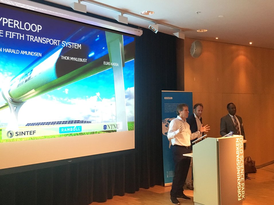 Han sto på podiet sammen med blant annet Lars Hagebris fra det finske Næringsdepartementet, som allerede er godt på vei med hyperloop-eksperimentering, og Gabriele Semino fra Universitetet i Munchen. Her har en gruppe studenter utviklet kjøretøyet POD og deres nyeste POD har nådd en fart på 467 km/t.