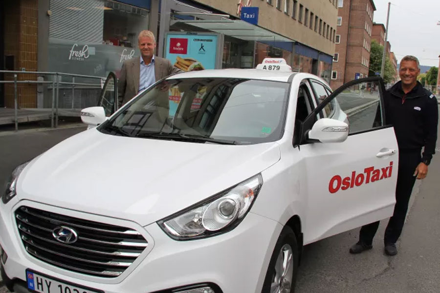 Siden januar har to drosjer i Oslo Taxi i det stille kjørt på utslippsfri hydrogen, og erfaringene er gode. Økonomien vil være bedre enn for elektriske drosjer de nærmeste årene, mener direktør Bjørn Rebne.