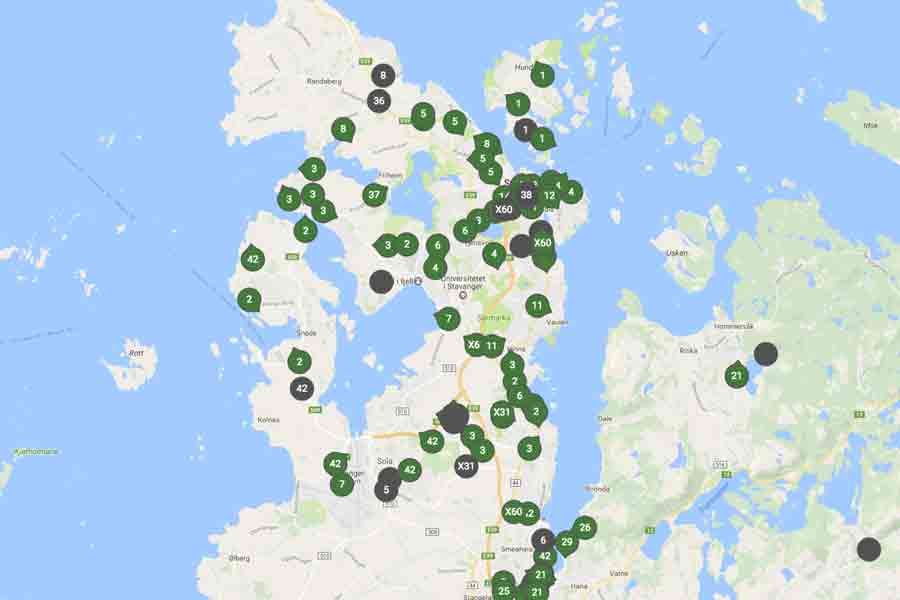 Kollektivreisende i Rogaland kan nå følge med på bussen i et sanntidsoppdatert kart. Med det nye kartet kan du se nøyaktig hvor bussen din befinner seg. Tjenesten er utviklet av Geta.