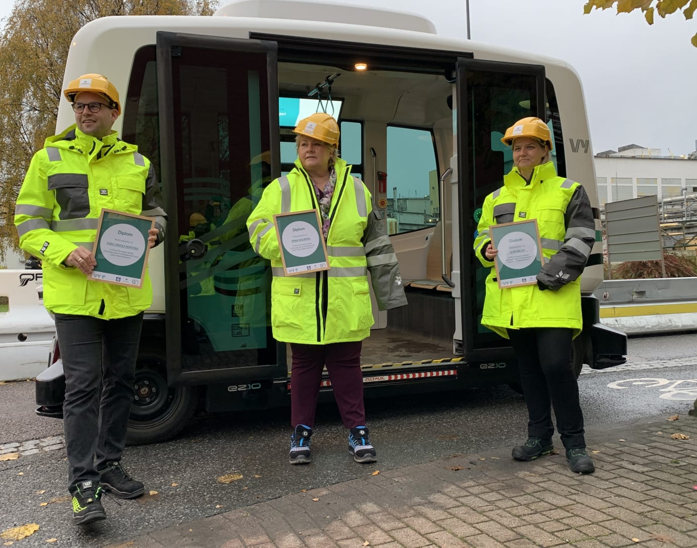 Solberg, Ropstad og Melby ble alle tildelt diplom for “nord-Europas første passasjer på en selvkjørende buss uten sikkerhetsvert”.